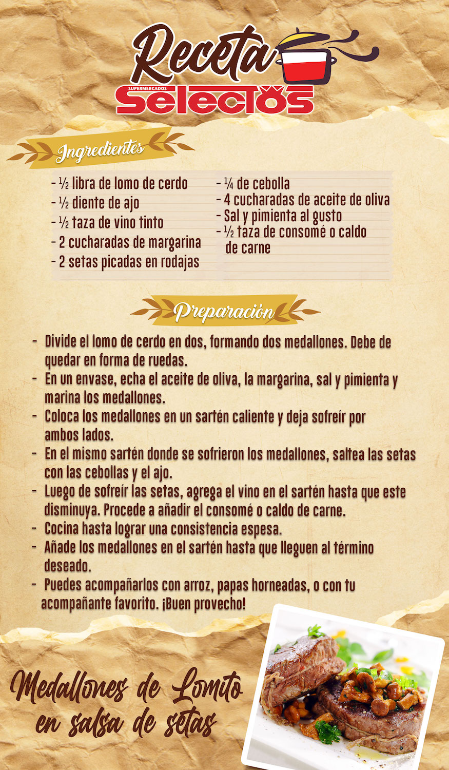 Medallones de Lomito en Salsa de Setas